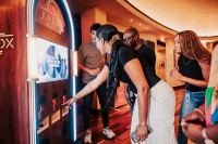 Guests at BMI’s Rooftop On The Row play the Red Bull Jukebox, enjoying three different flavors of Red Bull beverages. View Photo