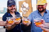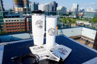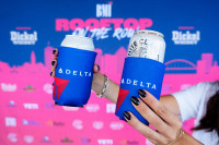 Guests keep beverages provided by event sponsor White Claw cold with lopsided supplied by sponsor Delta Air Lines at BMI’s Rooftop On The Row. View Photo