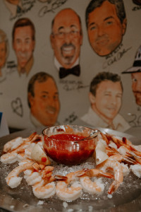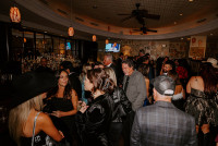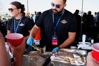 Attendees enjoy warm meals supplied by event sponsor Texas Roadhouse ahead of BMI’s Rooftop On The Row AMERICANAFEST kickoff party in Nashville. View Photo