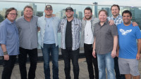 Texas Roadhouse’s Travis Doster, BMI’s Mason Hunter, Morgan Wallen, Big Loud’s Chief Zaruk, Big Loud’s Seth England and Big Loud’s Patch Culbertson gather backstage at BMI’s Rooftop On The Row. View Photo