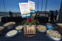 Guests lineup to try the lunch provided by sponsor O’Charley’s. View Photo