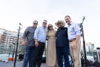 BMI’s Mason Hunter, Delta Air Lines’ Scott Jordan, Delta Air Lines’ Kris Norton, Tyler White (BMI) and Delta Air Lines’ Charie Schewe give away two $1000 flight vouchers to lucky attendees at BMI’s Rooftop On The Row®. View Photo