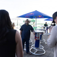 Sponsored by Red Bull Jukebox, BMI’s Rooftop On The Row® season eight kickoff emcee Love On The Spectrum’s Tyler White (BMI) hangs out ahead of the show. View Photo