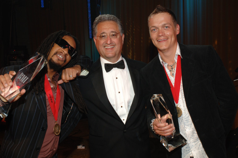 LOS ANGELES – May 18, 2005 – Paul Simon was honored as a BMI Icon during ceremonies at the 53rd Annual BMI Pop Awards, staged last night (May 17) at the Regent Beverly Wilshire Hotel in Beverly Hills. Del Bryant, President & CEO of the performing rights organization, presented Simon with an engraved silver piece “in recognition of your unique and indelible influence on generations of music makers.”