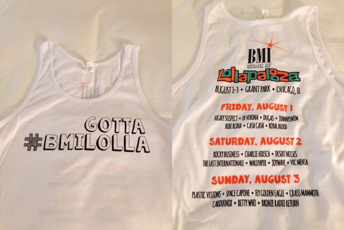 We'll be giving away tank tops all three days of the festival. Follow @bmi and #BMILolla for details. First 25 to show us your #selfie! Tweet ur #Lolla selfie from the BMI stage during @Highly_Suspect (8/1, 12PM) for a chance to win excl. #BMILolla tank!